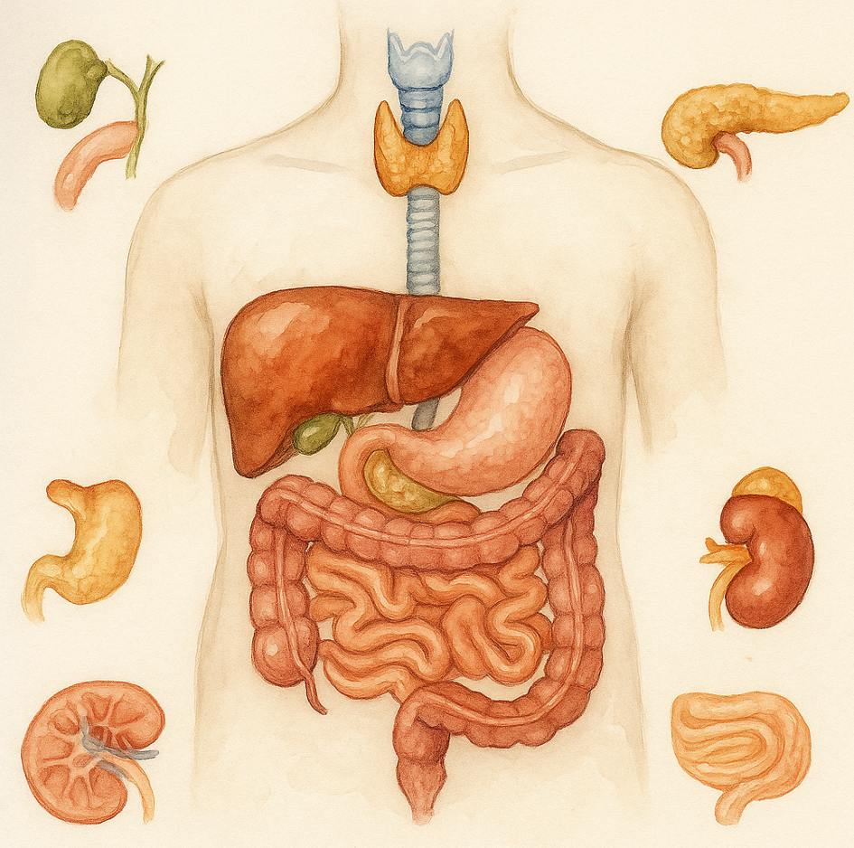 Так бывает, когда у человека сразу несколько диагнозов — панкреатит, камни в желчном, синдром раздражённого кишечника, узлы в щитовидке. В таких случаях нельзя «лечить всё сразу» — важно восстановить внутренний баланс и дать телу возможность работать без перегрузки.
